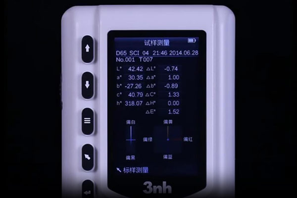 式中:SL=1,Sc=1+0.045C*,SH=1+0.015C*;C*—标样的彩度值;△L*—明度的差;△C*—饱和度的差;△H*—色调的差;kL—明度的权重;kC—饱和度的权重;kH——色调的权重。
